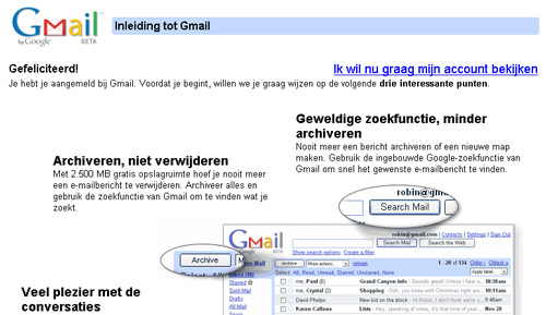 Wanneer alles goed is gegaan wordt je e-mailadres aangemaakt en verschijnt het volgende scherm: