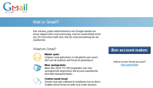 Een paar jaar geleden kon je alleen een Gmail adres krijgen op uitnodiging van een vriend of vriendin. Tegenwoordig kan dit ook rechtstreeks1. Ga naar de website www.Gmail.com.