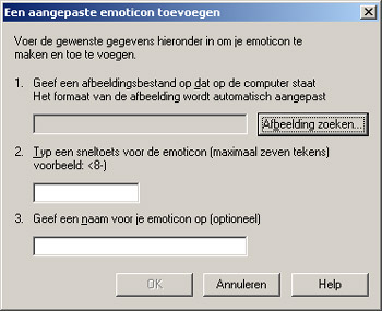 Log in op MSN en kies via het menu Extra de optie Mijn Emoticons. Het volgende dialoog verschijnt: