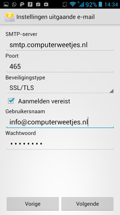 - SMTP beveiliging: TLS/SSL (verplicht: ja)